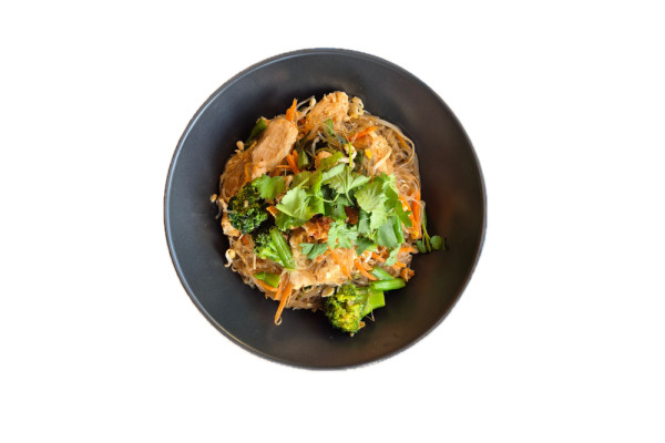 thajské nudle Mamá, vejce, zelenina, kuřecí maso nebo bez masa, sojová omáčka, ústřicová omáčka, koriandr, bazalka